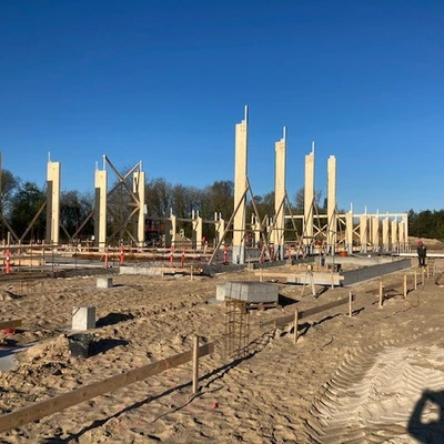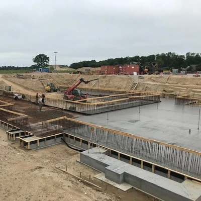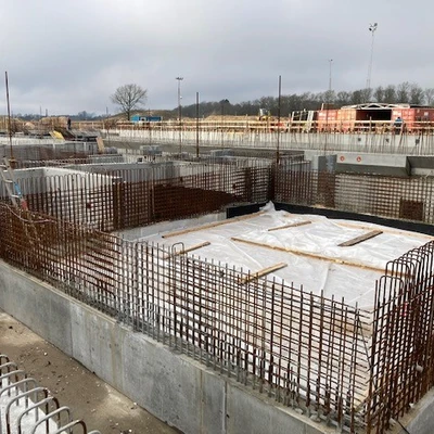 Vægkonstruktion beton-elementer. Betonelement formside. Omklædningskerne og administrationskerne